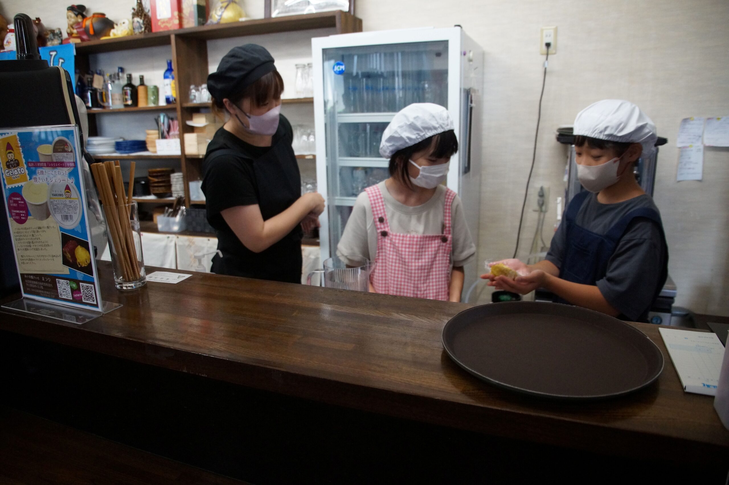 お店で地元のお客さんに接するスタッフ体験をしてみました。