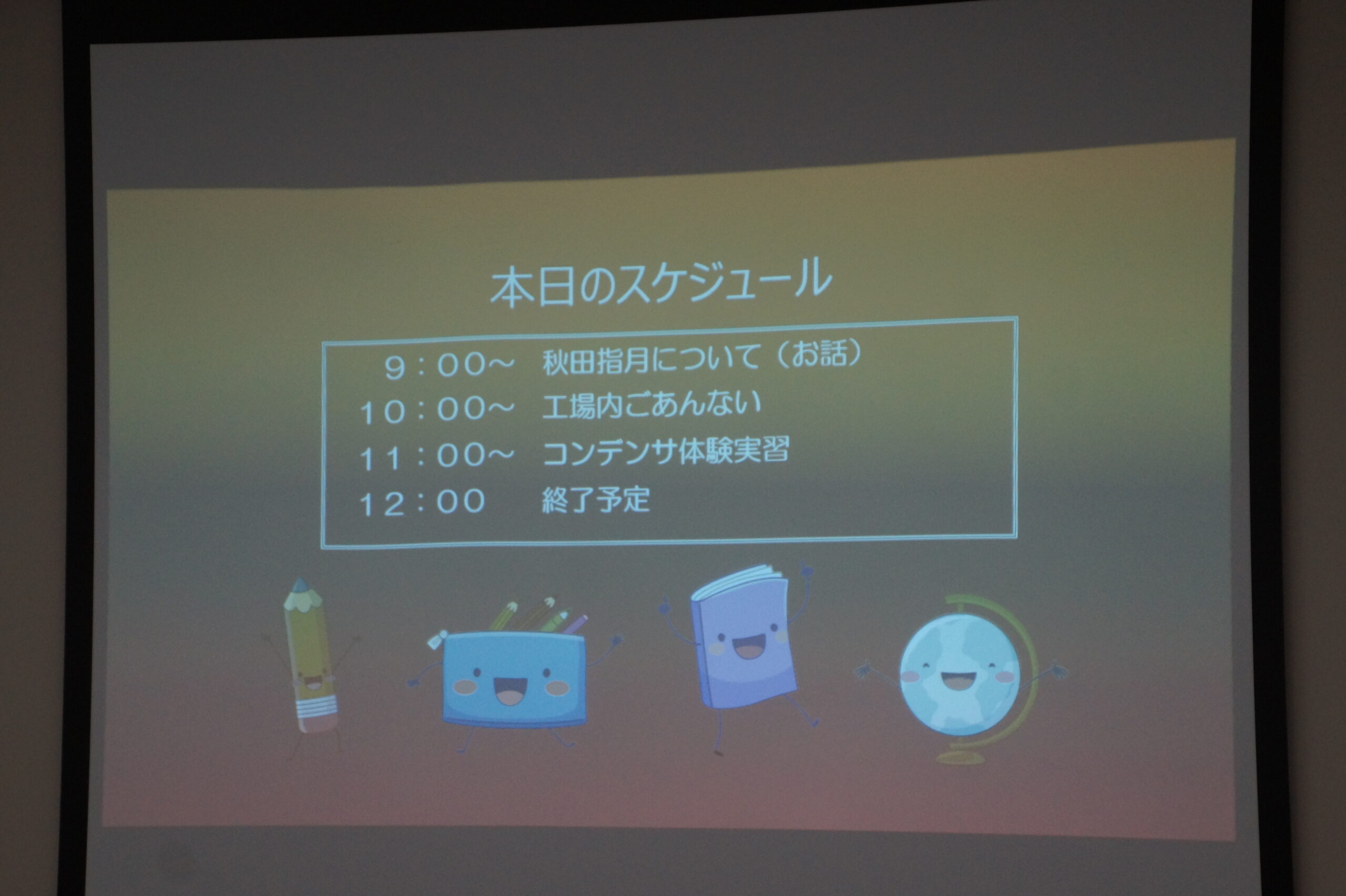 ・ 9:00~ 9:05 あいさつ、今日の予定の確認